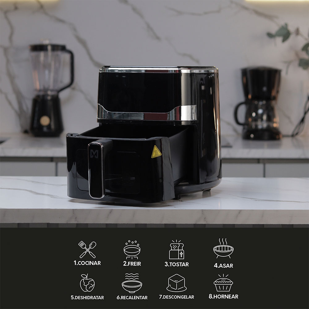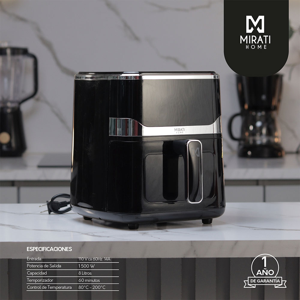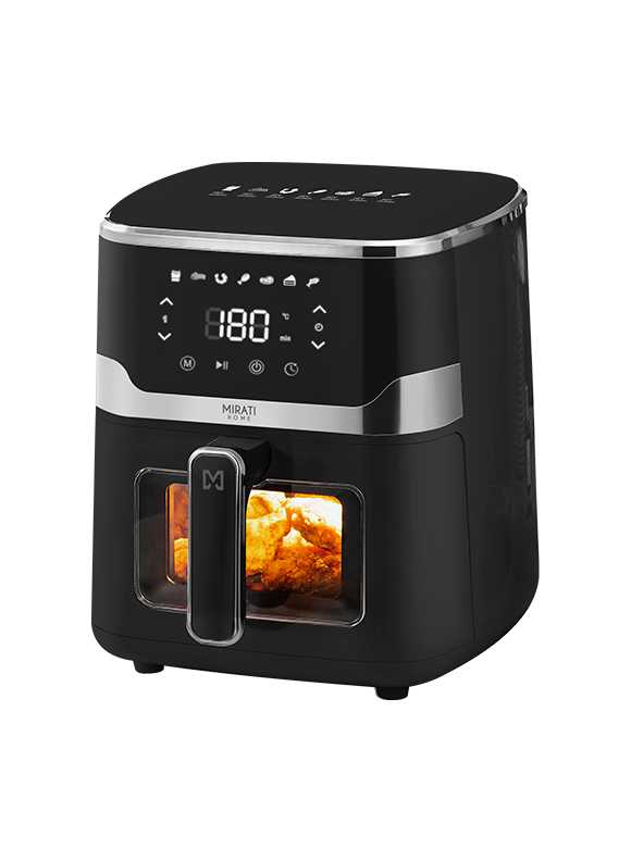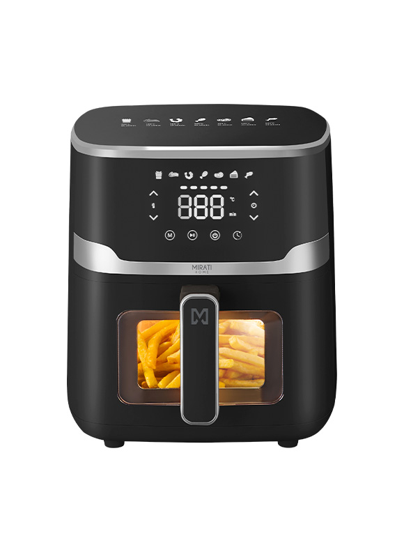 La freidora de aire Mirati Home incorpora una práctica ventana transparente que te permite observar el proceso de cocción sin abrir el compartimento, conservando el calor y garantizando resultados perfectos. Cuenta con 8 programas automáticos para que puedas cocinar fácilmente papas fritas, pollo, mariscos, repostería y mucho más con solo presionar un botón.