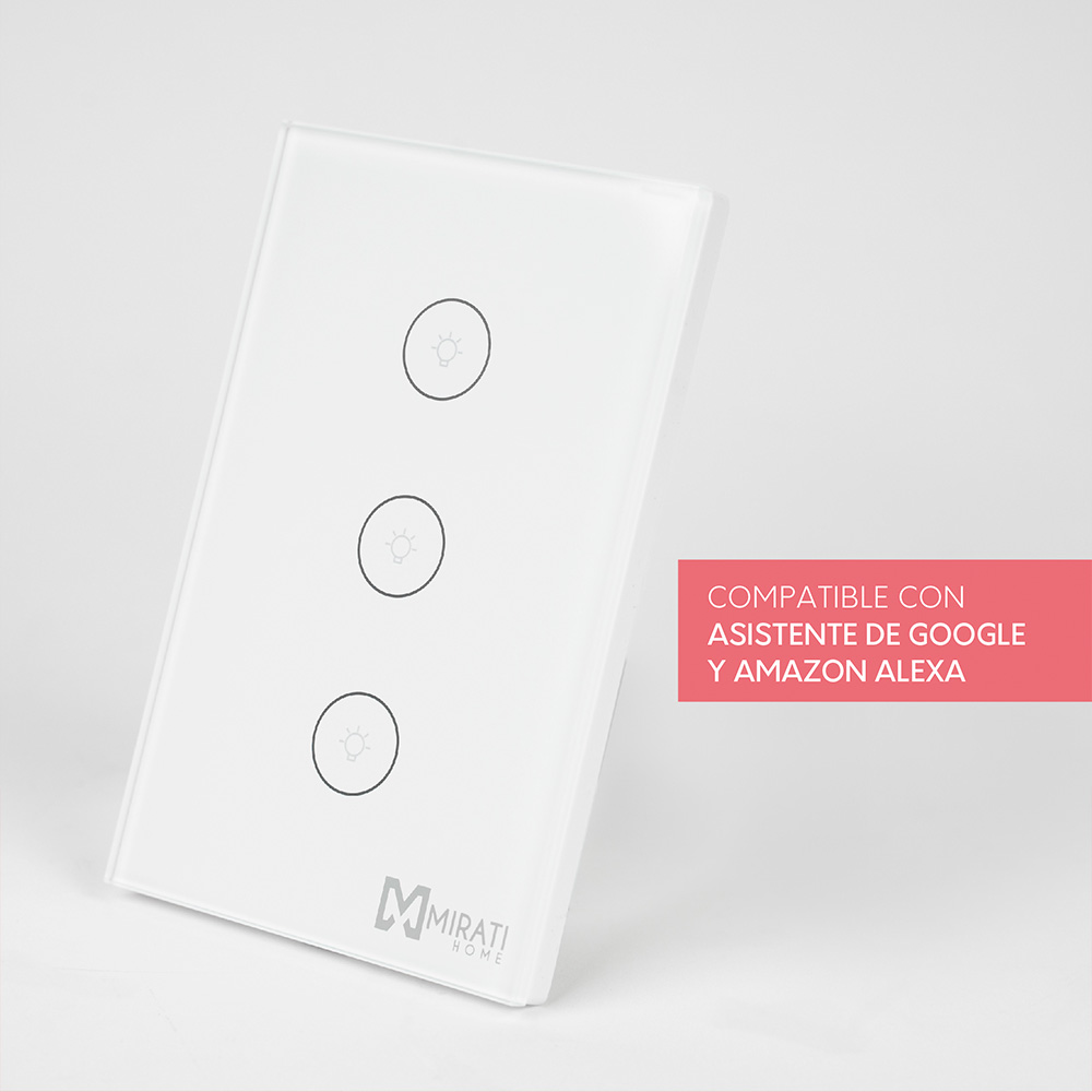 Apagador Inteligente Mirati De Pared WiFi Bluetooth 3 Apagadores Touch M3SI2