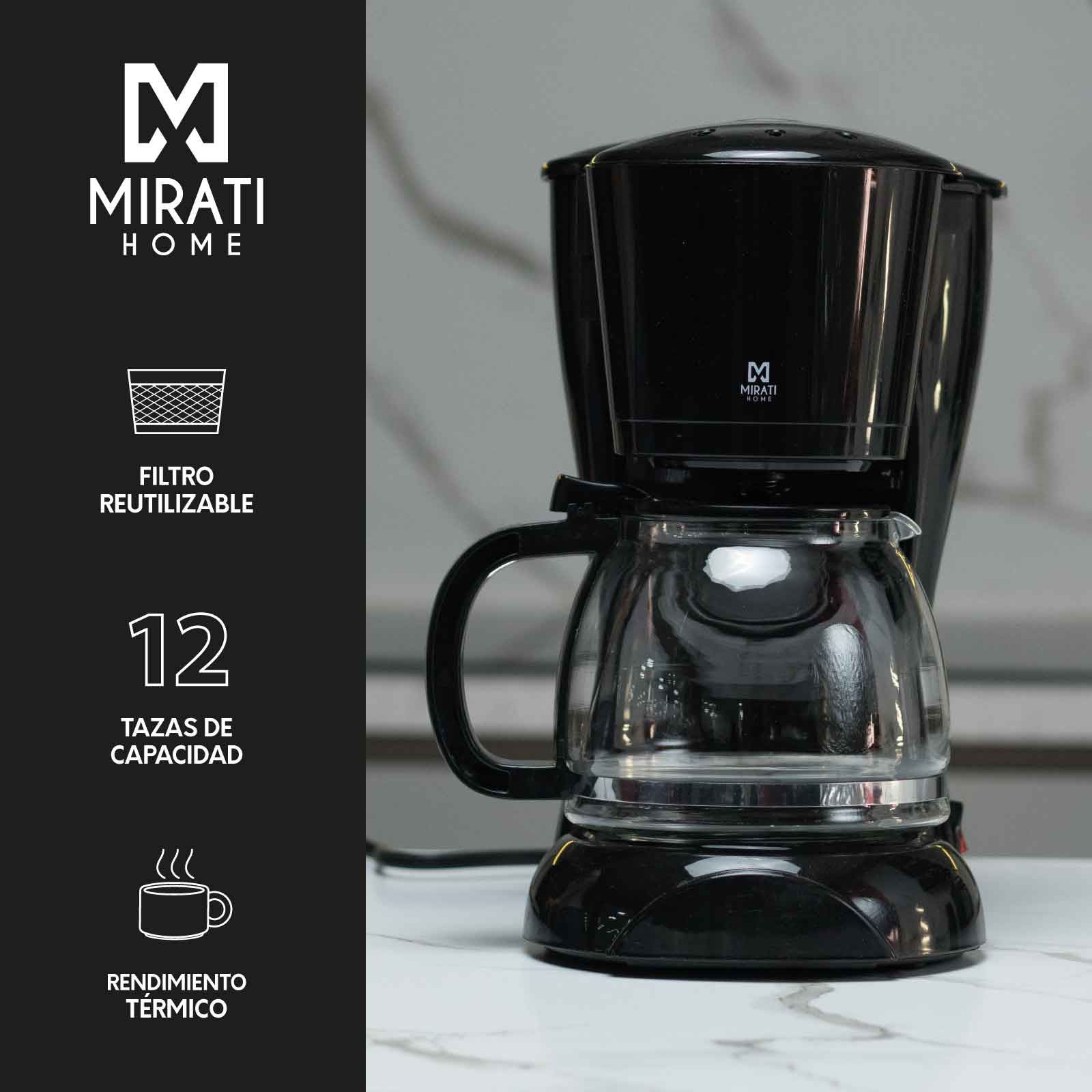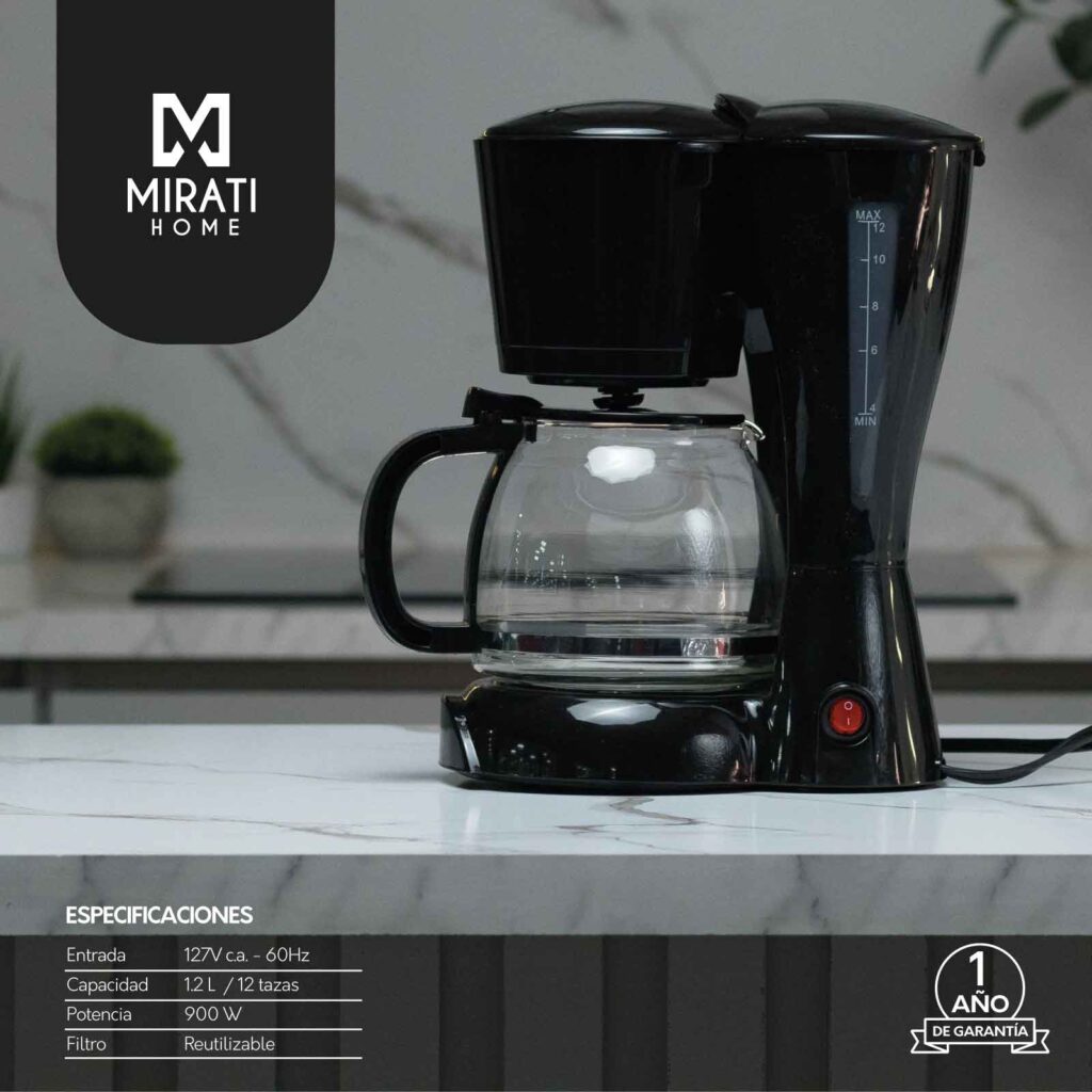 Cafetera Mirati 1.2 LT Filtro Lavable 900W Color Negro Modelo MBC01N
