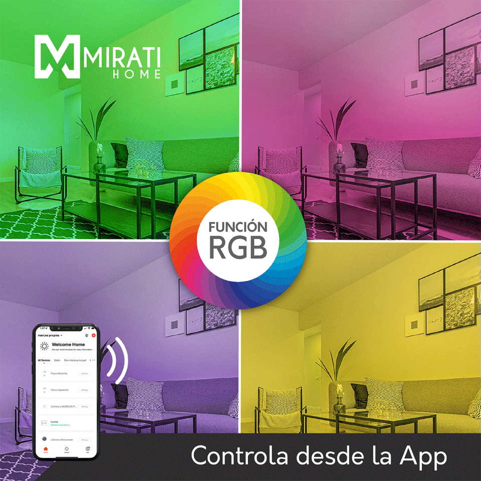 FOCO INTELIGENTE LUZ RGB 9W// MIRATI // WIFI 2.4GHZ // COMPATIBLE CON ANDROID E IOS // FUNCIONA CON ALEXA Y ASISTENTE DE GOOGLE // LUZ CALIDA Y FRIA //LUZ MULTICOLOR // DIMMABLE // NO REQUIERE HUB//